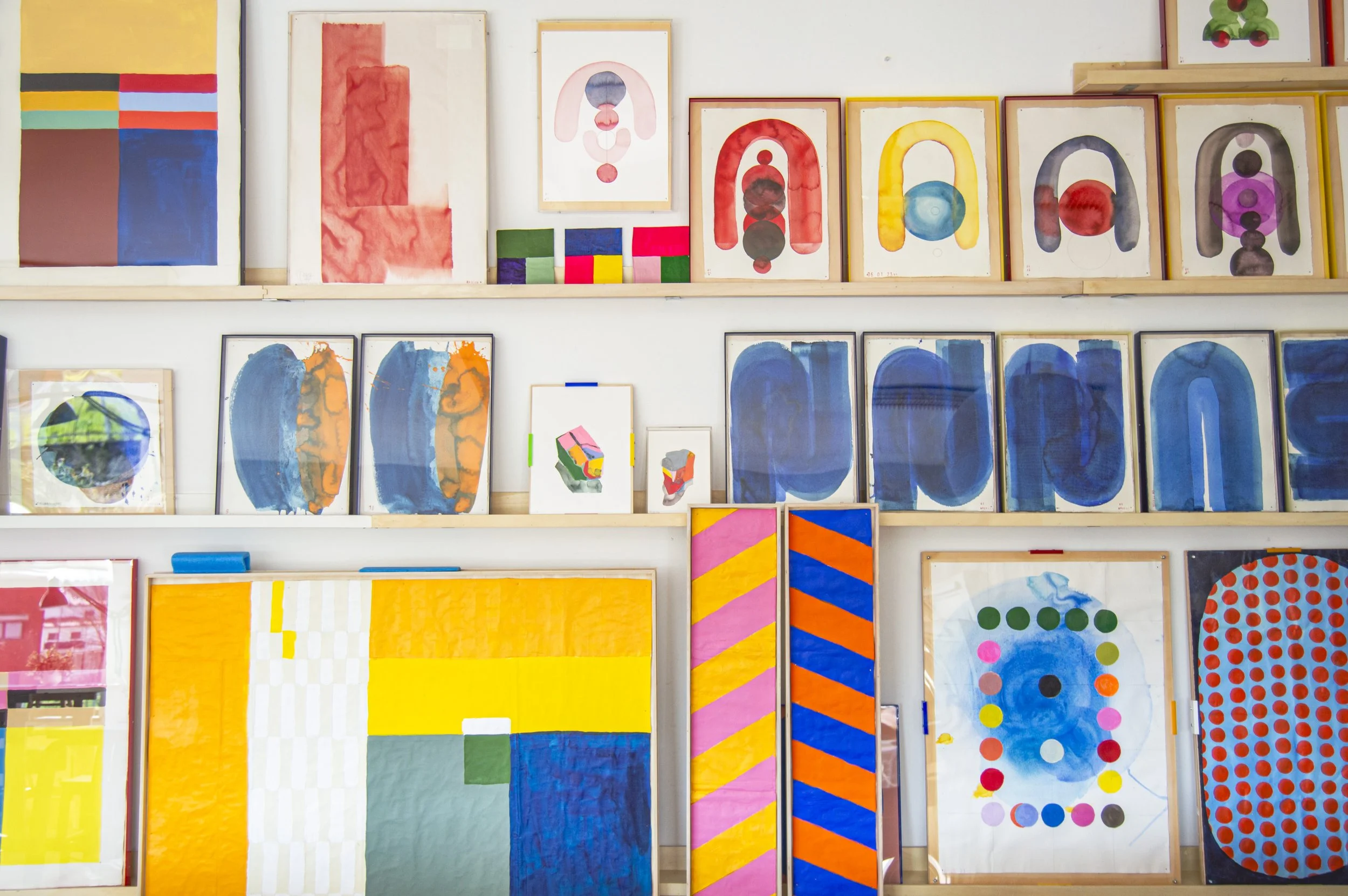 “My painting is part of a broader practice that includes working with paper, fabric, journaling, drawing, photography, music, and psychology. Taking photos with my iPhone is a daily practice, fulfilling my need to continuously explore how to live, and uncover what is important to me. My geometric paintings reflect my need for order, shape, space, symmetry, light, stillness, and most importantly, they express my love for color.”